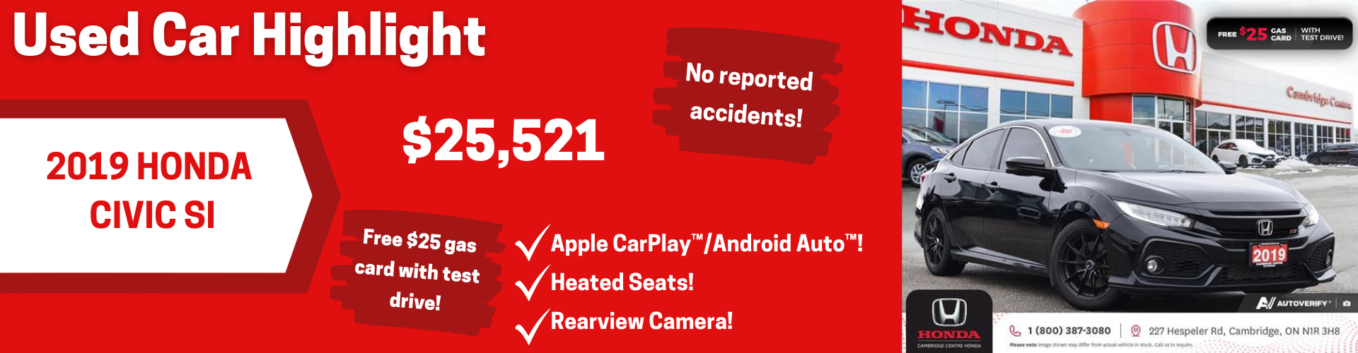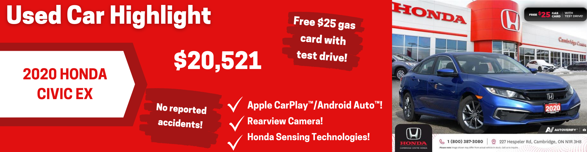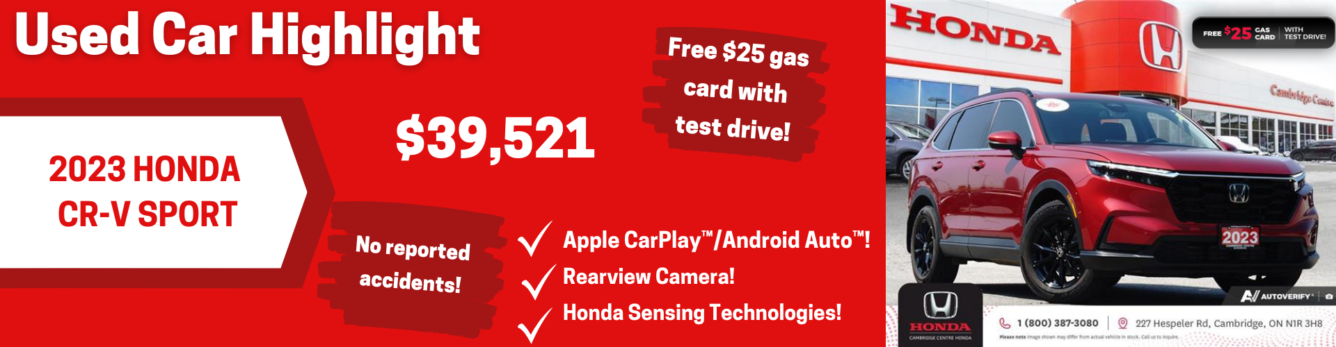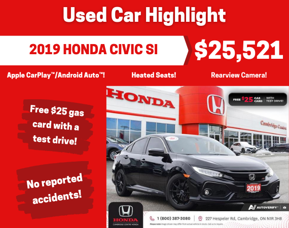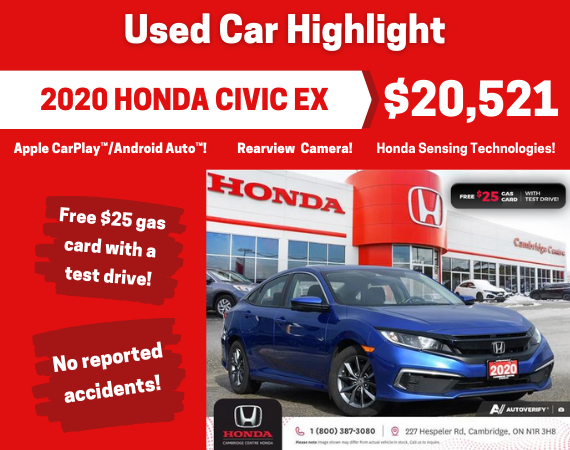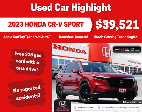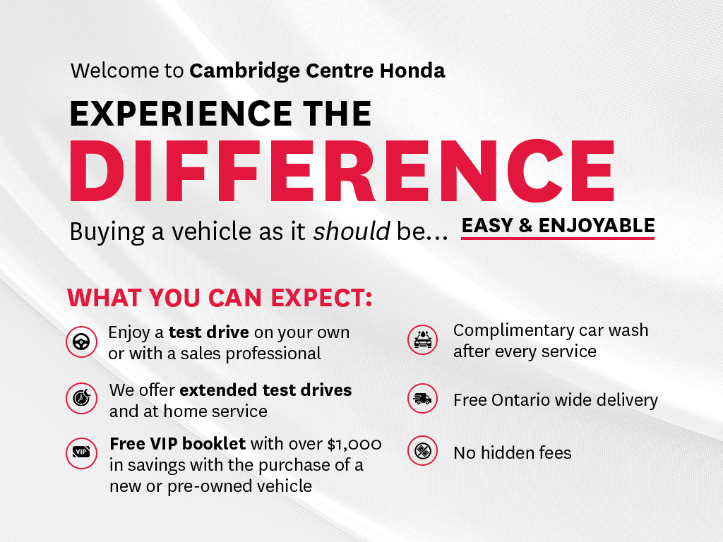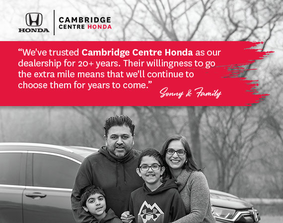 Disclaimer: Finance and Lease offers on approved credit. Regional offers, lease and finance conditions apply. See your local Honda dealer for more information. Use of any calculation and/or tools on cambridgecentrehonda.com does not constitute an offer of direct financing or any particular lease, finance, purchase option or transaction. Calculation and tools are intended for illustrative purposes only. Rates and requirements may vary depending on credit worthiness. Every effort is made to ensure the accuracy of the content on the pages on cambridgecentrehonda.com. In the event of a discrepancy, error or omission, vehicle prices, offers and features as established by Honda Canada and participating Honda dealers in Canada, will prevail.
